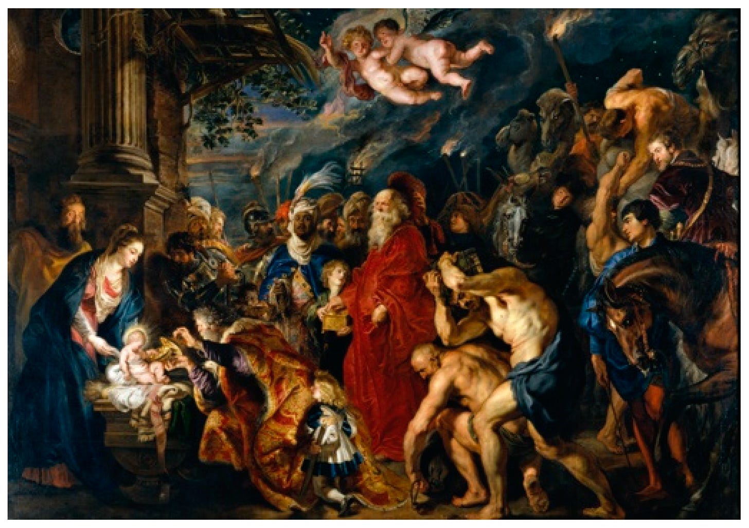 She said she did not know and would look it up. So she whipped out her phone and then exclaimed, “Ja, got it!” and she read out the details, “Rubens. The Adoration of the Magi.” She titled her head at painting. “That’s baby Jesus”.