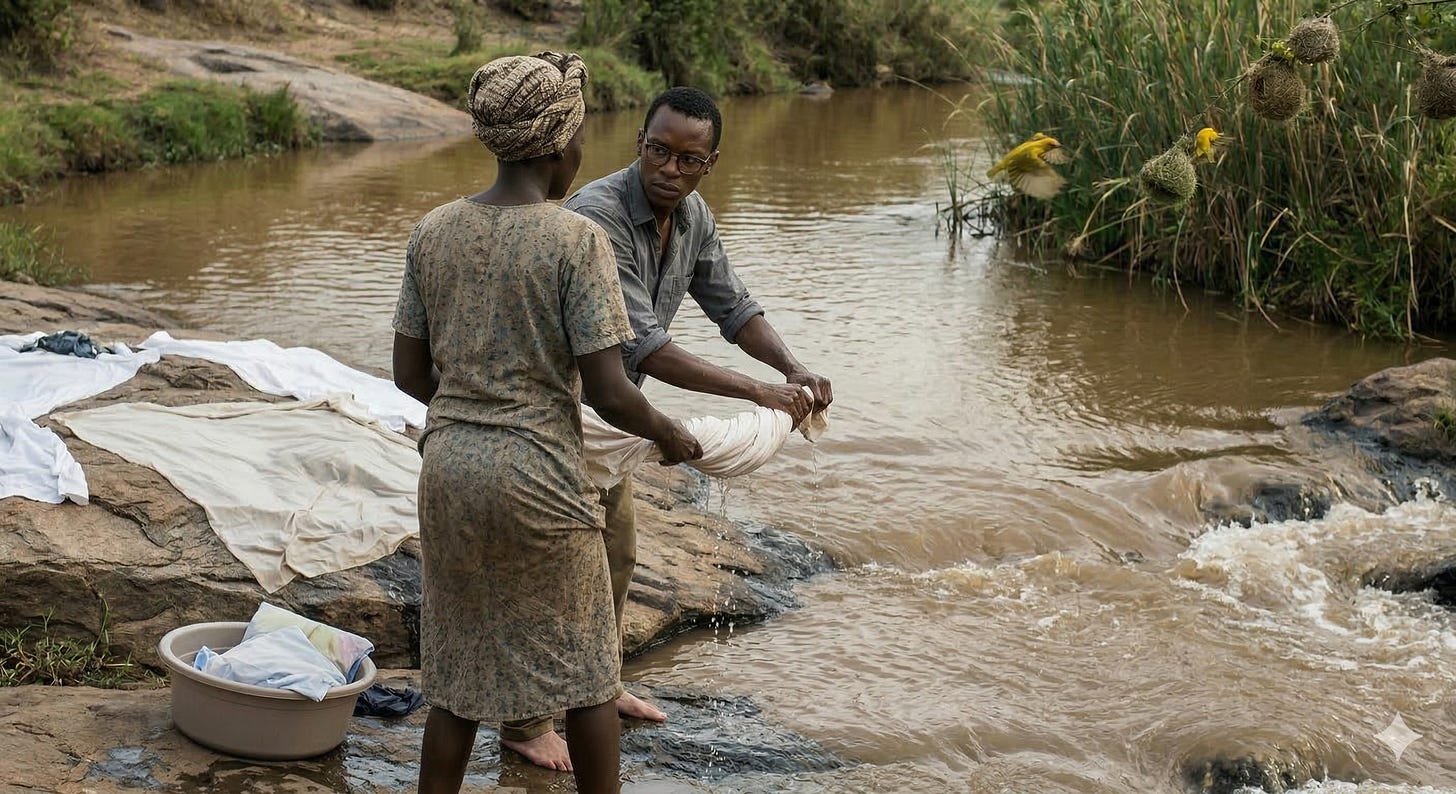 The incident happened two years after she had become his regular housekeeper. At least once every three weeks, Nyapol would take the laundry to the river. To wash his sheets because his mother had this habit of locking his rain water storage tank with a padlock to conserve water for her son while he was away. The river was her idea and over the months, Nyapol had become accustomed to doing all the bulk laundry by the river.